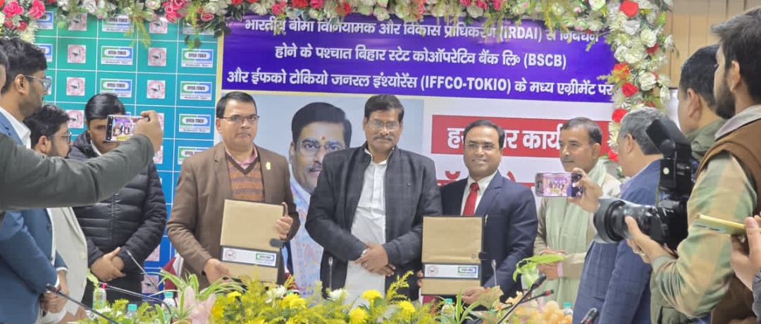 बिहार स्टेट को-आपरेटिव बैंक लि. तथा इफको टोकियो जनरल इंश्योरेंस कंपनी लि. के मध्य एकरारनामा पर हस्ताक्षर बैंक की ओर से श्री श्रीन्द्र नारायण, उप महाप्रबंधक एवं कंपनी की ओर से श्री विपुल गुप्ता, वाईस प्रेसिडेंट, IFFCO Tokio ने किया ।