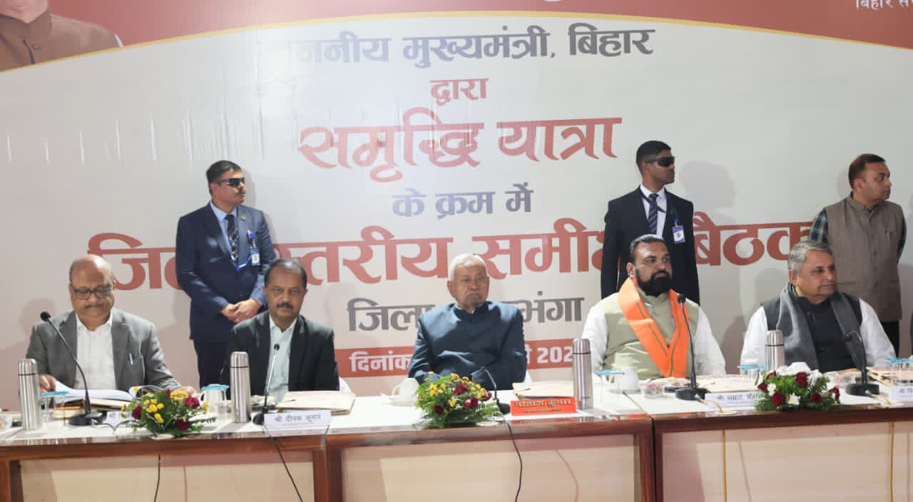 बीपी डेस्क। मुख्यमंत्री श्री नीतीश कुमार ने आज समृद्धि यात्रा के दौरान दरभंगा के नागेन्द्र झा स्टेडियम में दरभंगा जिले की विकास कार्यों की समीक्षा की। अधिकारियों के साथ समीक्षात्मक बैठक में मुख्यमंत्री ने कहा कि 20 नवंबर, 2025 को राज्य में नई सरकार के गठन के कुछ ही दिनों बाद हमलोगों ने राज्य को देश के सर्वाधिक विकसित राज्यों की श्रेणी में शामिल करने हेतु सात निश्चय-3 के कार्यक्रमों को लागू किया है। सात निश्चय-3 के सातवें निश्चय ‘सबका सम्मान-जीवन आसान’ (Ease of Living) का मुख्य मकसद राज्य के सभी नागरिकों के दैनिक जीवन में आने वाली कठिनाइयों को कम कर उनके जीवन को और भी आसान बनाना है। इसे लेकर हमलोग लगातार काम कर रहे हैं।