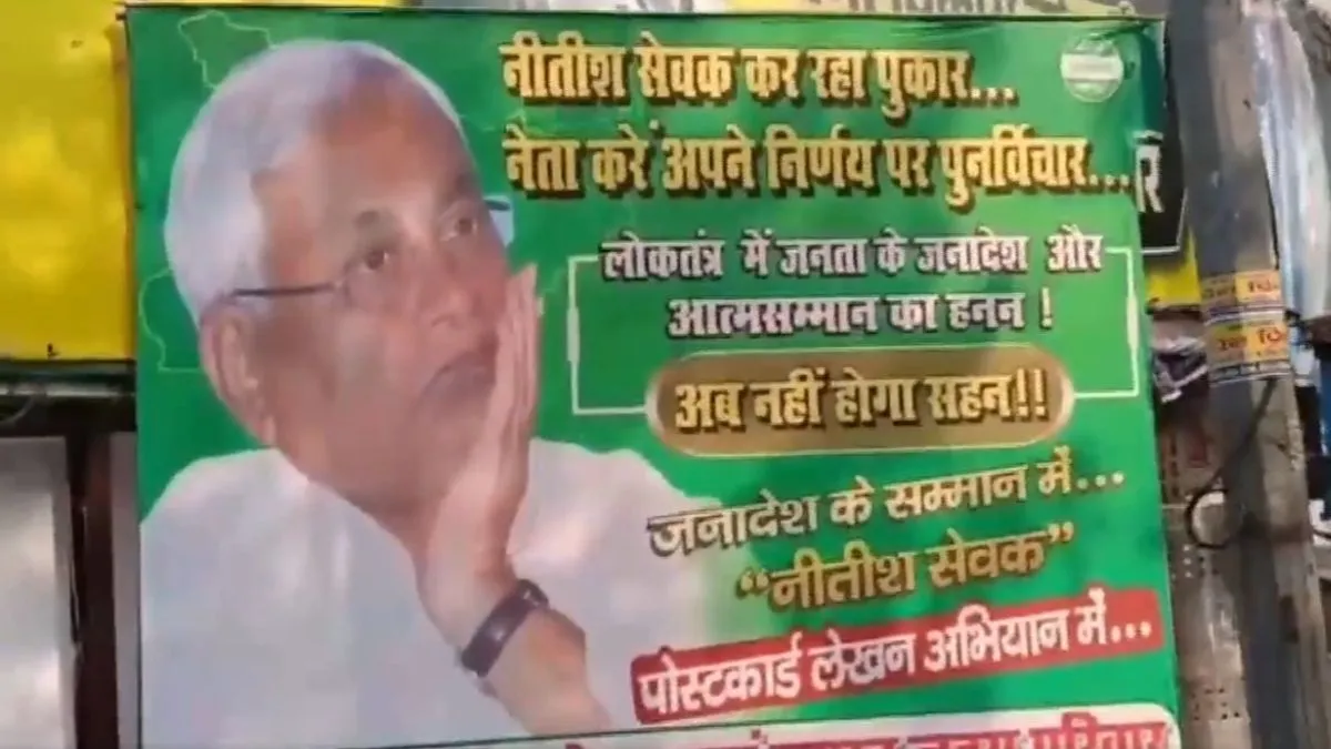 मुख्यमंत्री नीतीश कुमार के राज्यसभा जाने पर जेडीयू कार्यकर्ता आक्रोशित, कार्यालय के बाहर पोस्टर लगाकर पुनः विचार करने की मांग की